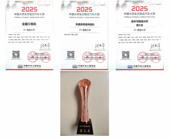 【海南大学机电工程学院】海大机电工程学院南海方程式赛车队荣获2025中国大学生方程式汽车大赛三等奖