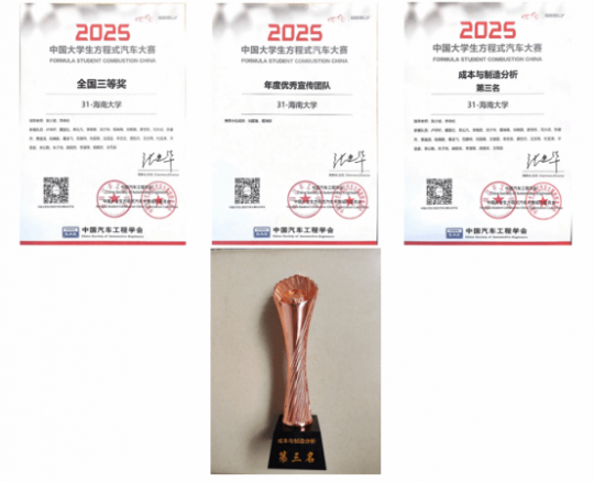 【海南大学机电工程学院】海大机电工程学院南海方程式赛车队荣获2025中国大